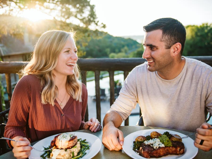 Combining the best of southern homestyle cooking with rustic decor, Devil's Pool offers an unforgettable casual dining experience. Indulge in the comfort of the past and present as you savor the taste and aroma of hickory smoked prime rib, fresh Rainbow Trout or local Ozarks Favorites. Breakfast and lunch buffets are served daily and the very popular Sunday Brunch is a highlight of the week. Hand-wrought metal chandeliers cast a warm glow over antique furnishings and our 100-year-old mahogany bar. Outdoor seating is available as weather permits.