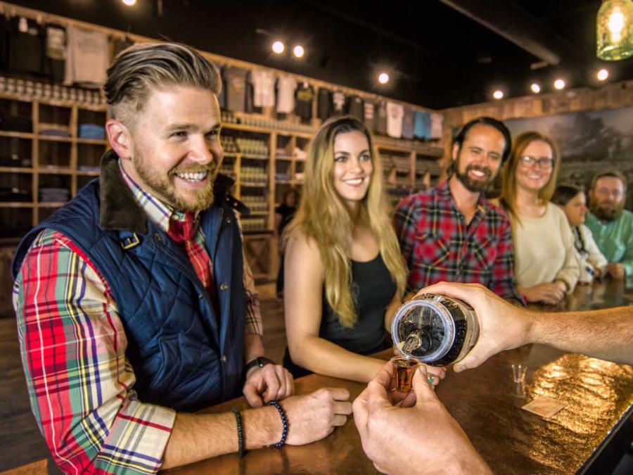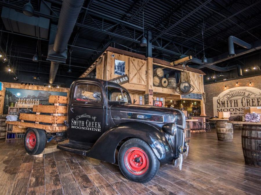 Smith Creek Moonshine is a first - moonshine-tasting destination and hamburger restaurant at the exciting Branson Landing. This unique attraction includes a moonshine tasting bar, a master mixology bar where guests can try out some mixed moonshine concoctions, a handcrafted and stuffed hamburger restaurant and a retail store where guests can purchase bottled shines, apparel, jams, sauces, dry rubs and more. The impressive 5,000-square-foot virtual distillery features rustic and modern designs, including a 1941 Ford prohibition moonshine hauler, and plenty of Ozarks atmosphere, including live music on select nights and an in-store distillery. Smith Creek Moonshine offers a variety of flavors, including Straight White Lightnin', Apple Pie, Salted Caramel, Cinnamon, Peach, Sweat Tea, Coffee, Chocolate Silk and more. A tasting session allows you to decide which is your favorite flavor before heading home with a bottle or two.