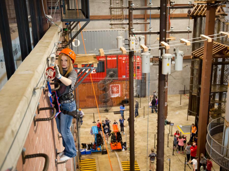 Fritz's is an indoor adventure park that brings outdoor adventure into the great indoors. This includes the world's first indoor/outdoor TreeTops Zipline Course with over 40 obstacles, including high-flying ziplines, suspension bridges, and a crow's nest with a view for miles. Fritz's also has a real airplane suspended in the air, a multi-story ropes course, treehouses, slides, containers, underground tunnels, a laser maze, warped walls, and climbing challenges like you've never experienced before. All of this is under one roof with over 80,000 square feet of explorable space.